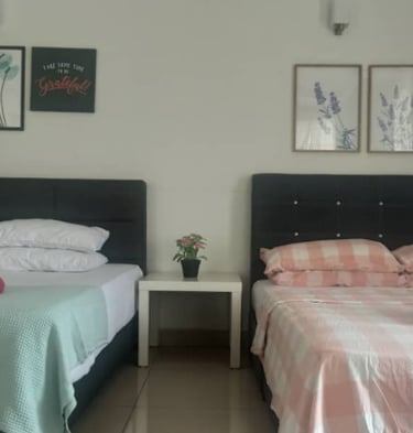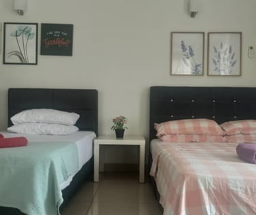 👥 Up to 5 Guests 🛏 1 Queen + 1 Single + 2 Floor Mattress 🌐 High-Speed Wi-Fi 🎬 Netflix & Smart TV ❄️ Air Conditioning • 🌀 Fan 🅿️ Free On-Site Parking 🍳 Pantry with Fridge 💧 Cuckoo Hot & Cold Water Dispenser 🏊♂️ Swimming Pool 🔒 Nearby popular hotspots
