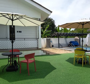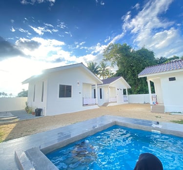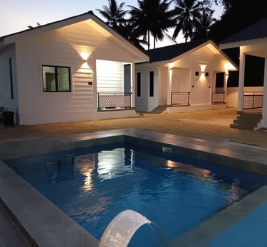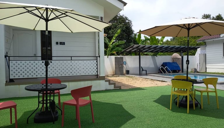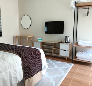 👥 Up to 5 Guests 🛏 1 Queen + 1 Single 🌐 High-Speed Wi-Fi 🎬 Netflix & Smart TV ❄️ Air Conditioning 🌀 Fan 🅿️ Free On-Site Parking 💧 Cuckoo Hot & Cold Water Dispenser 🏊♂️ Shared Swimming Pool 🏖 Approx. 200m Walking Distance to Beach 🔒 Private, Quiet & Peaceful Village Stay